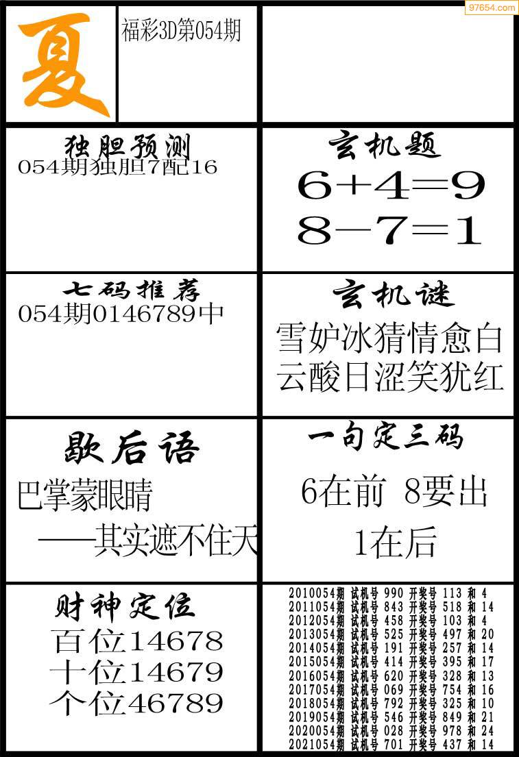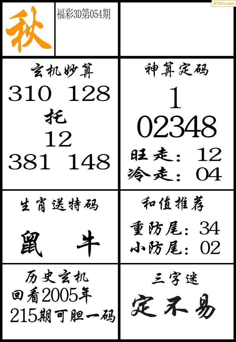 3D26073期[喜无边]独胆双胆图 3中1