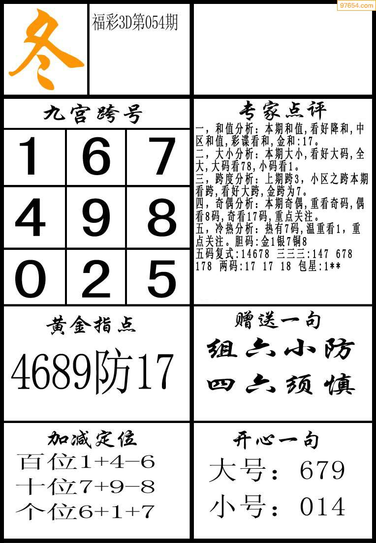 3D26073期[金手指]三胆...
