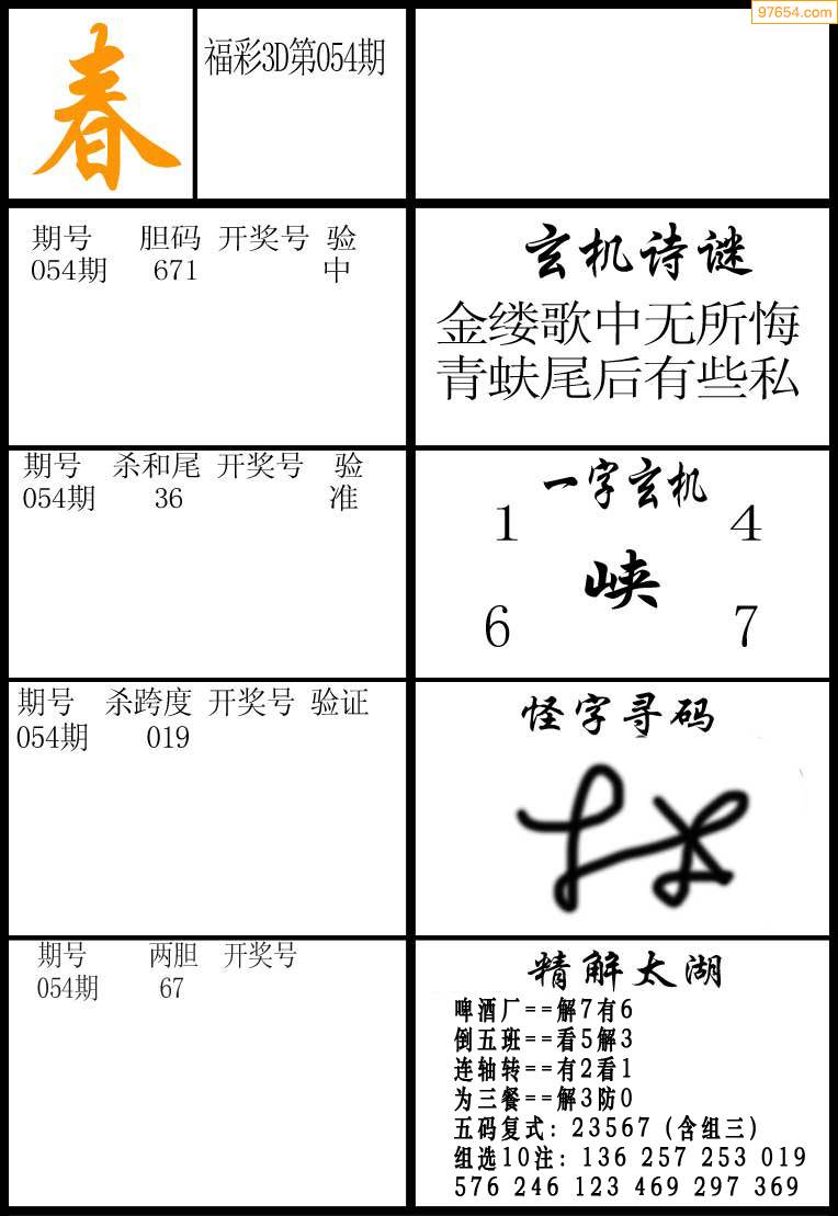 3D26073期[夫子命]独胆...