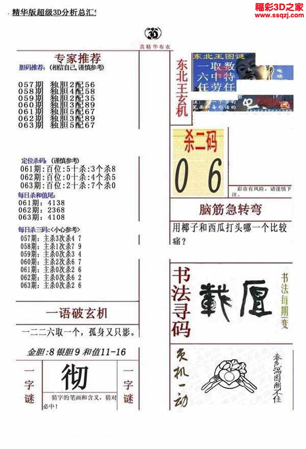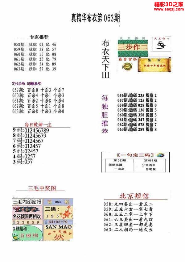 22063期布衣3D图谜版全图汇总(天齐整理)