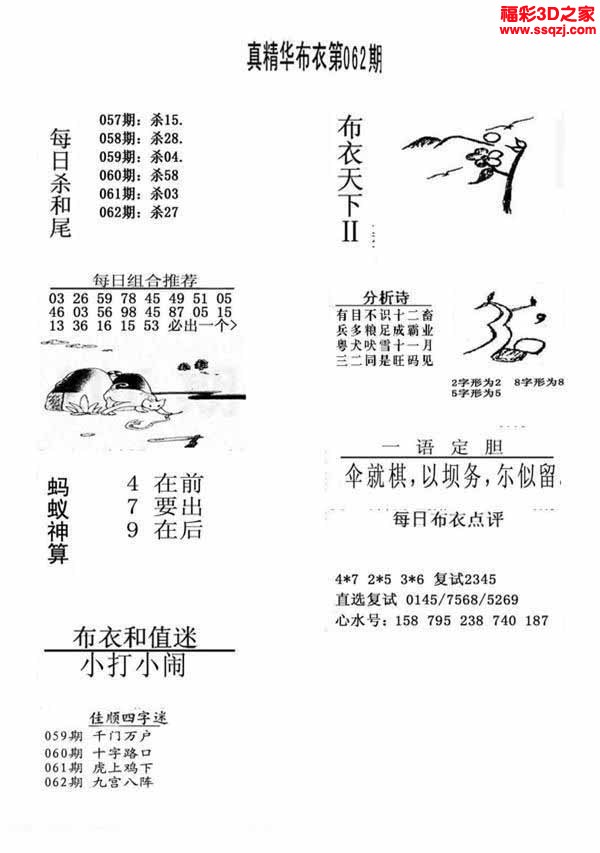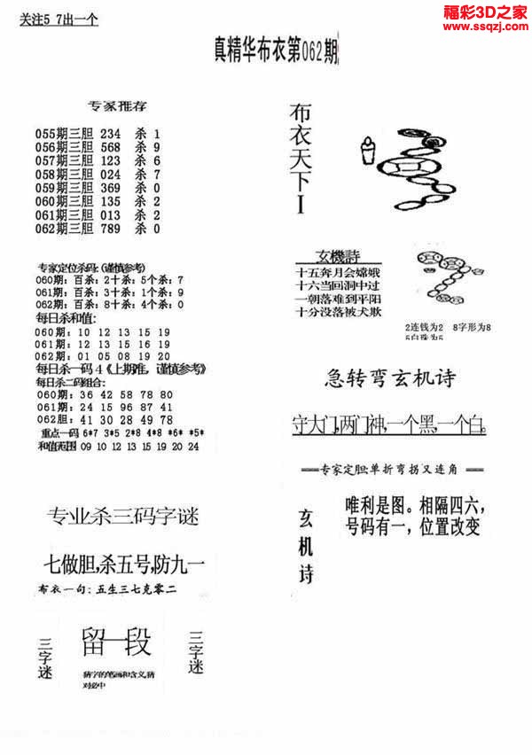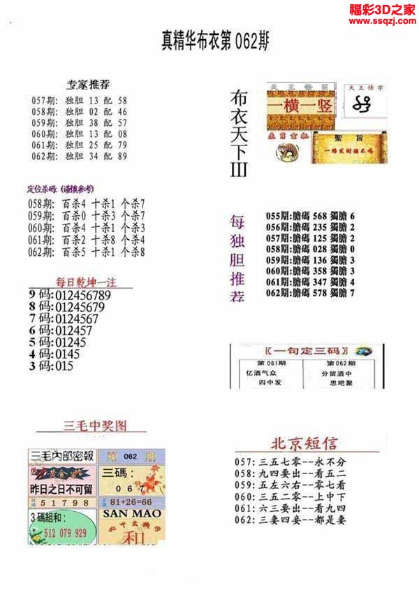 063期今天3D会员布衣+精华早报+真精华布衣123456