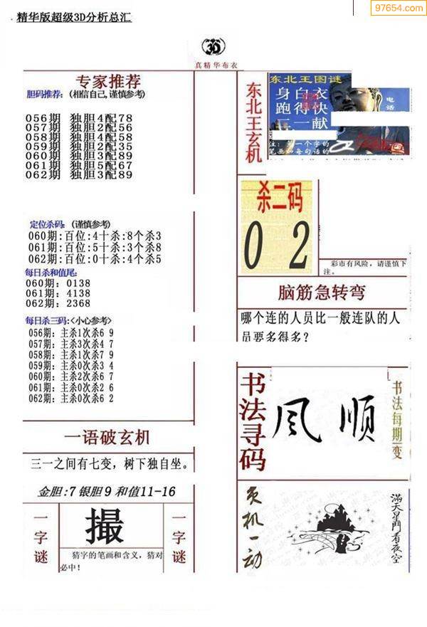 - 26070期福彩3d试机号后3D定胆诗谜