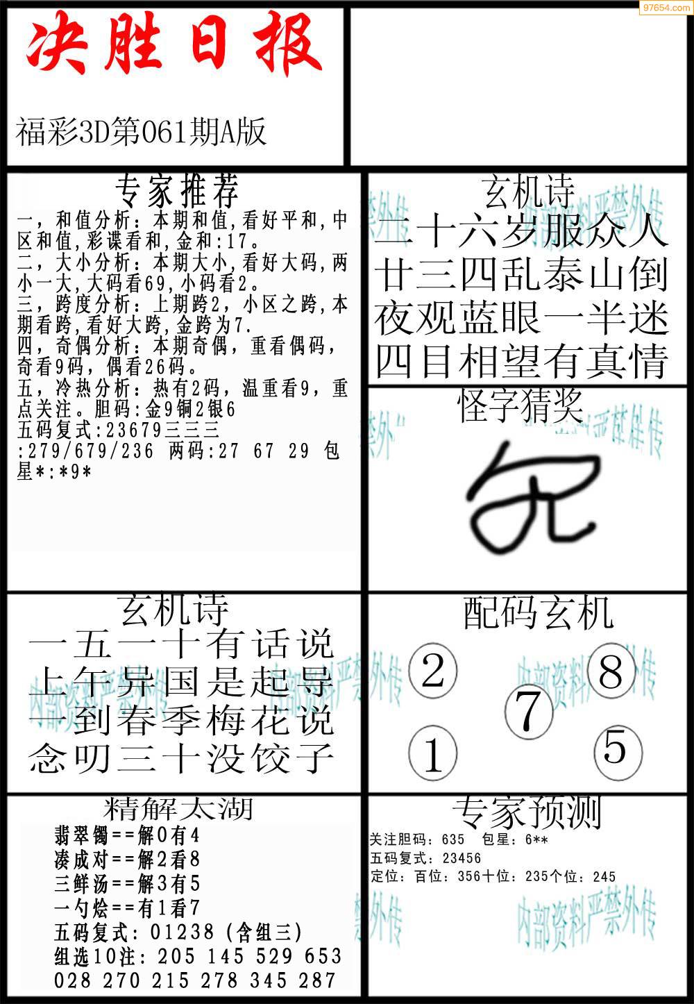 22年061期决胜日报福彩内部资料
