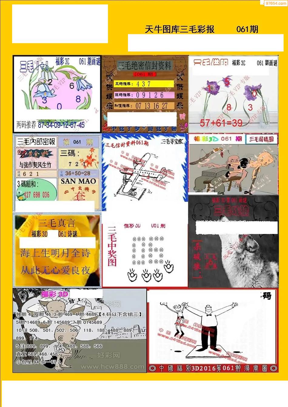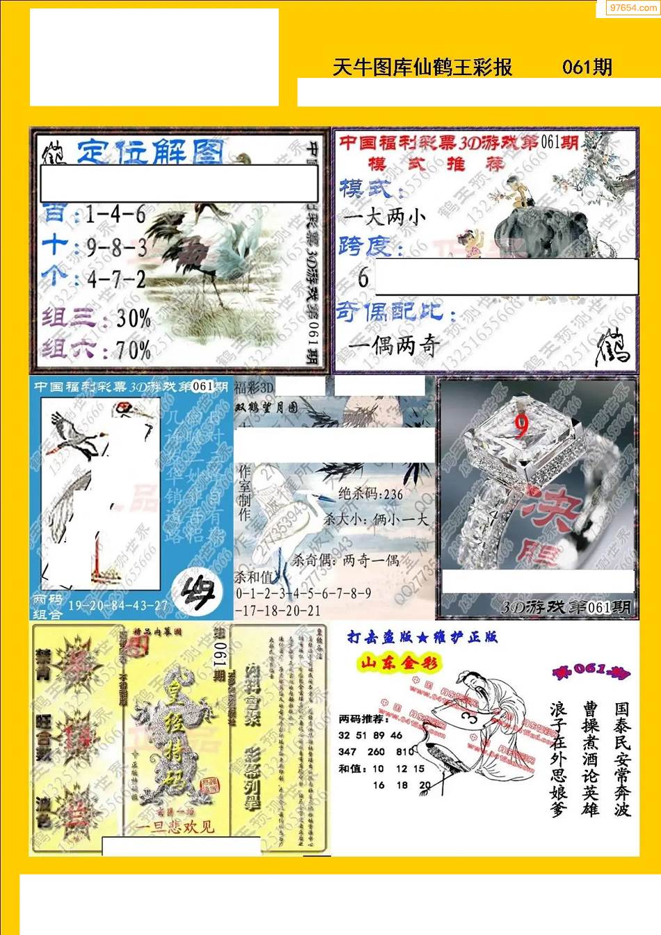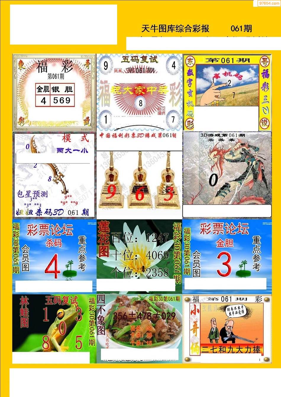 福彩3D061期天牛图库综合彩报七版