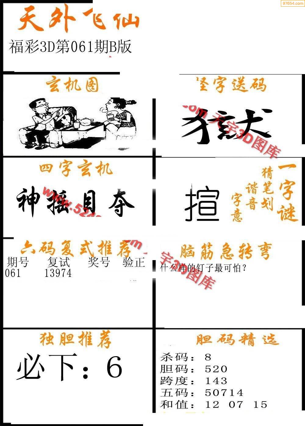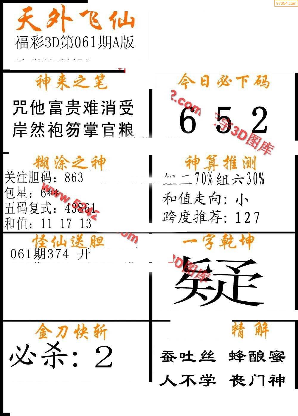3D26070期[水灵风]独胆参考图