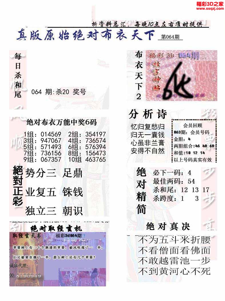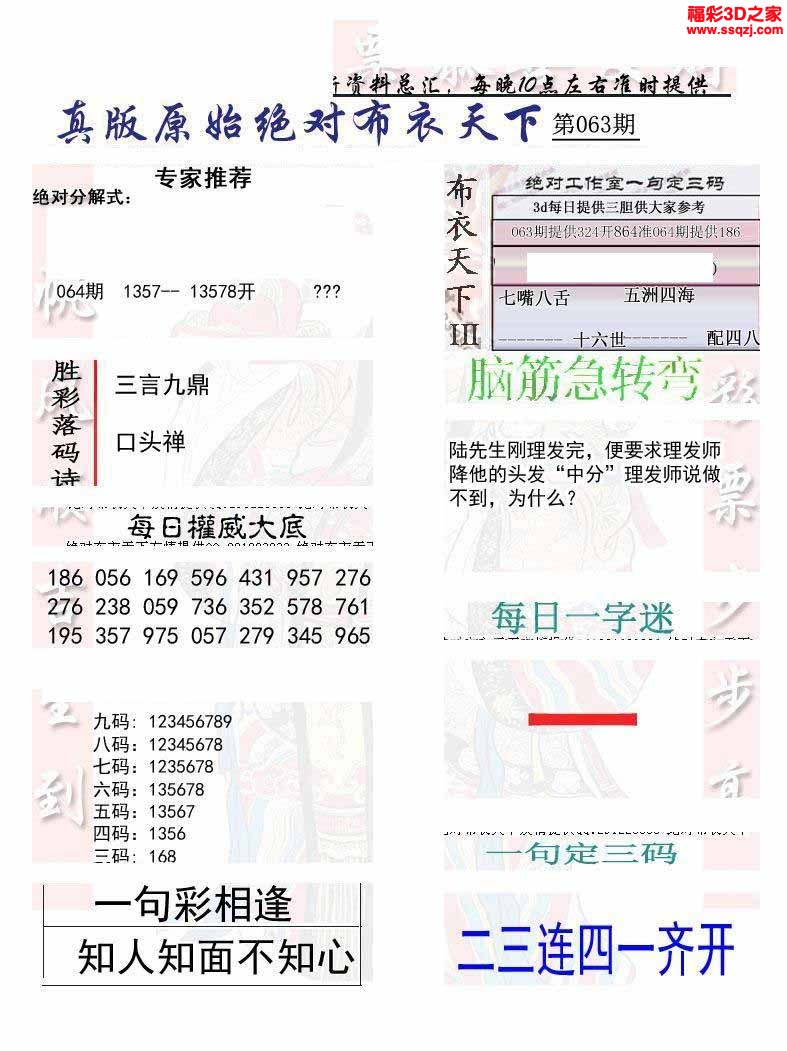 3d2022064期真精华布衣天下123456