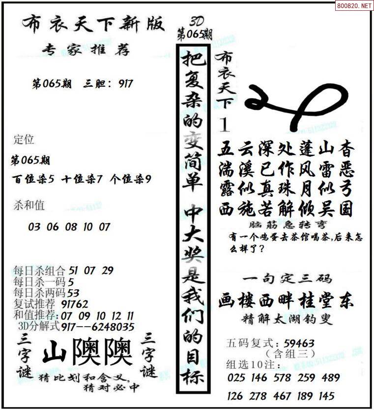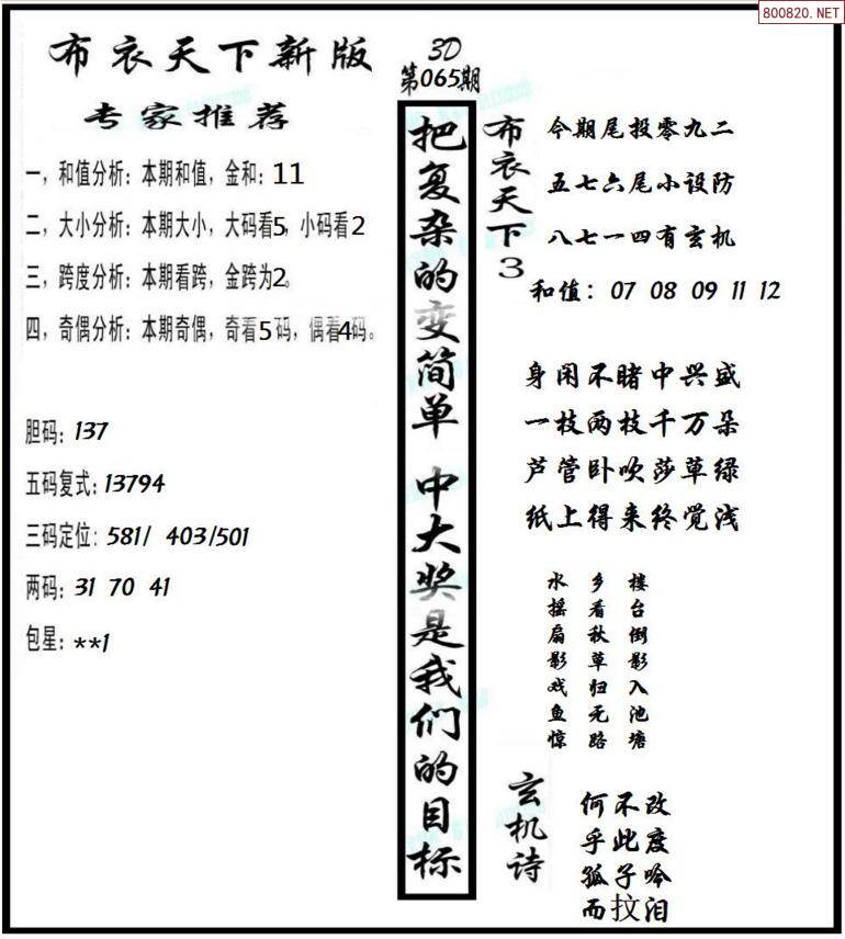 3d2022065期布衣神算字谜图