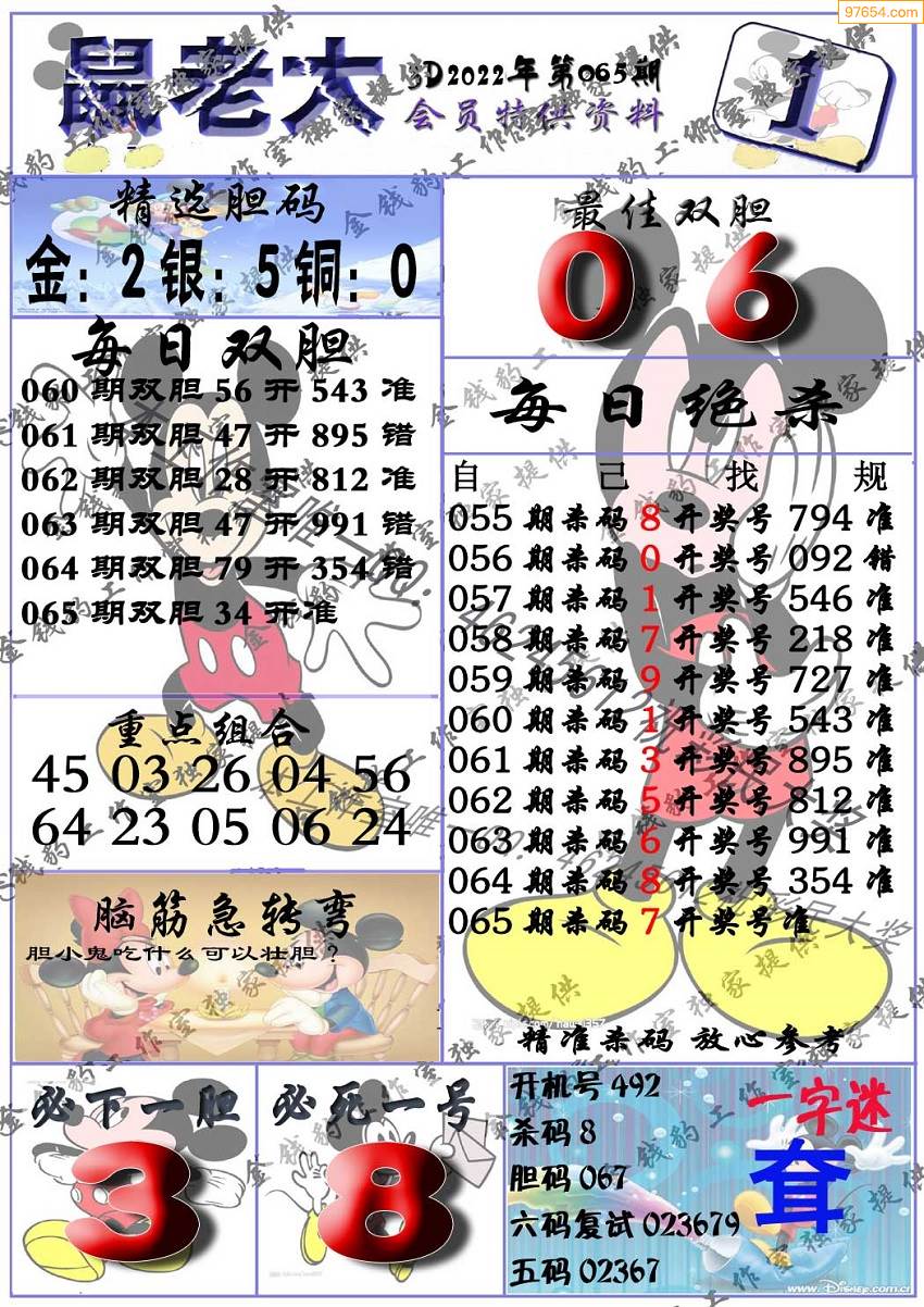 2022年065期福彩3d真鼠老大12