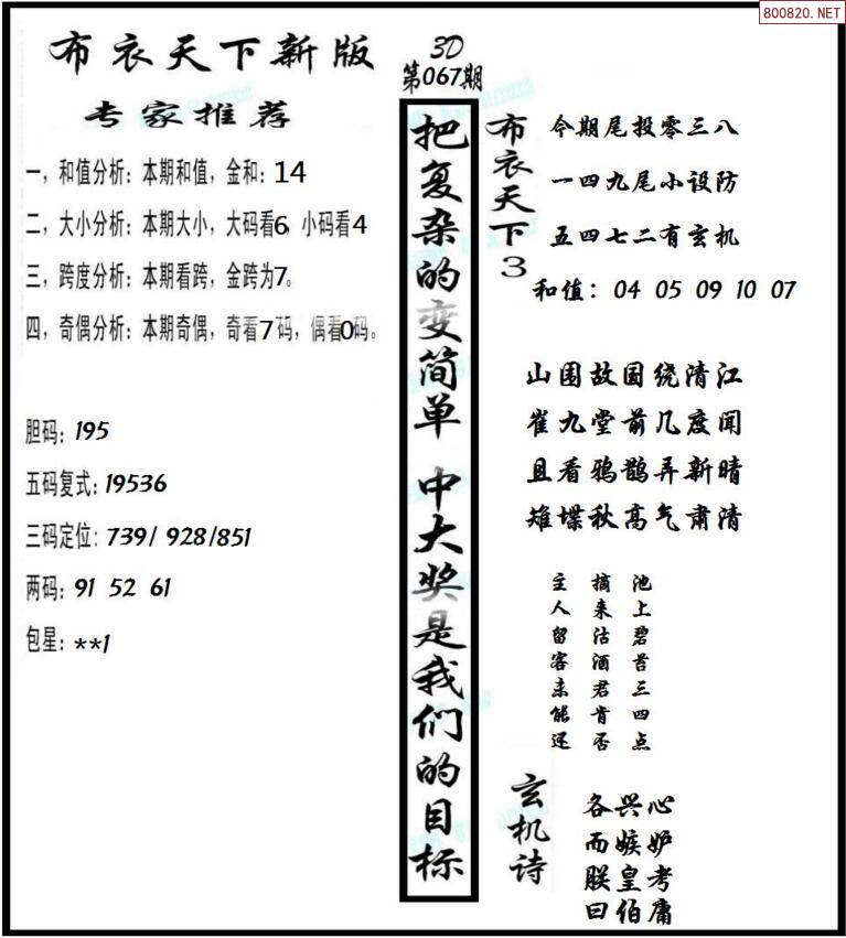 下一篇: 3d2022067期真精华布衣天下123456
