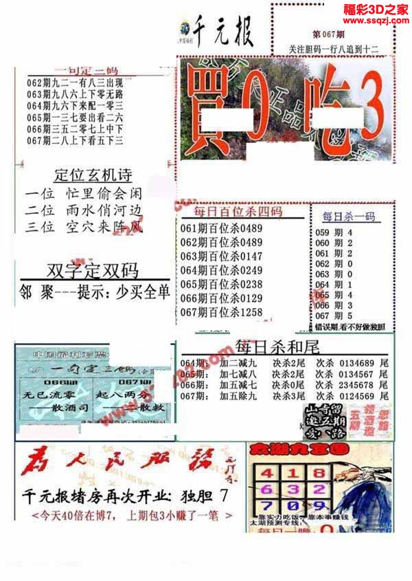 3D26068期钱大爷稳三胆...