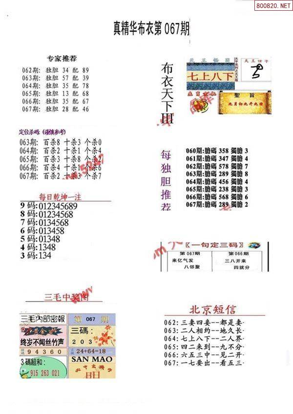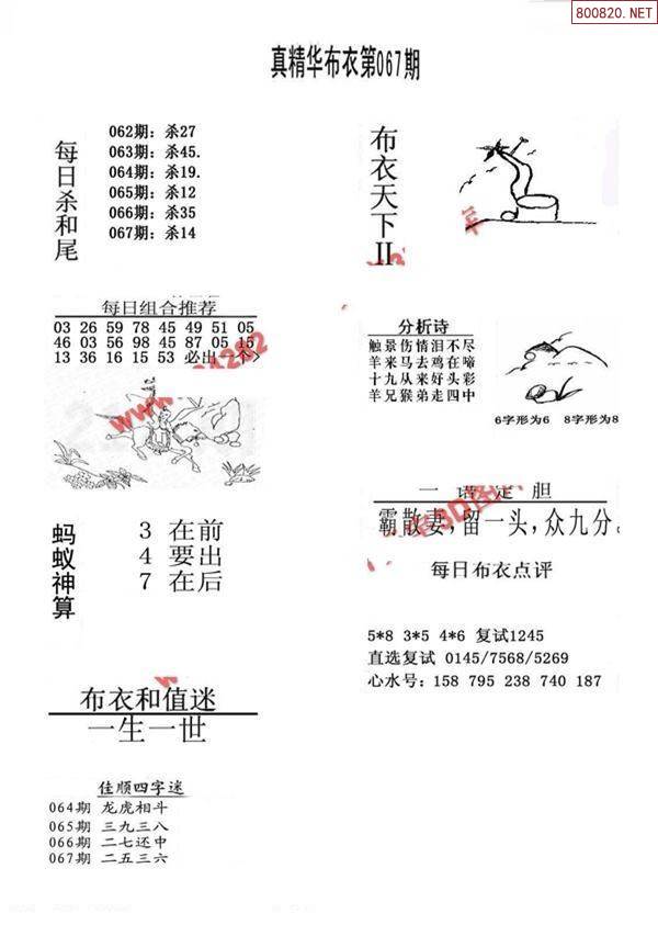 2022年067期精华真布衣图123456(早晚版)