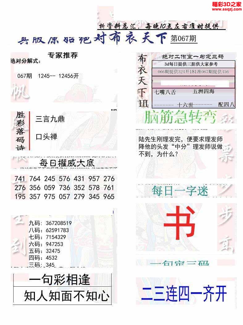 22067期真精华布衣123456