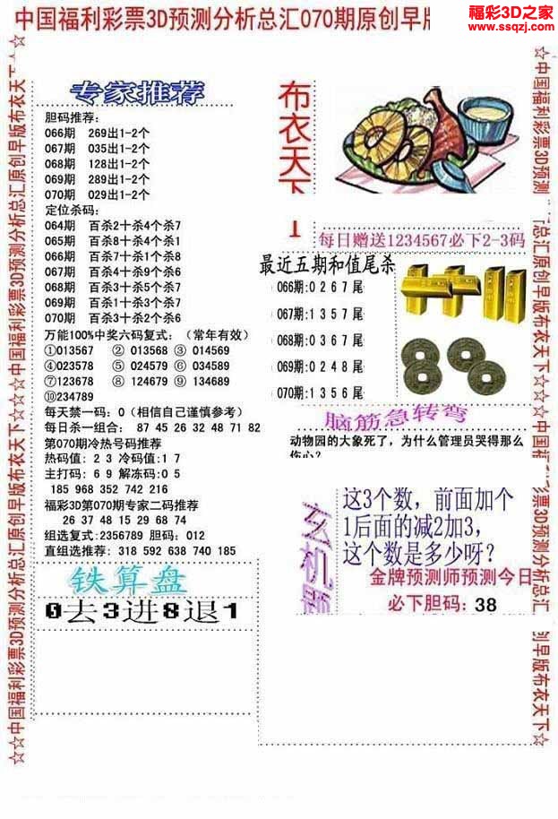 3D26067期钱大爷稳三胆图 7中5