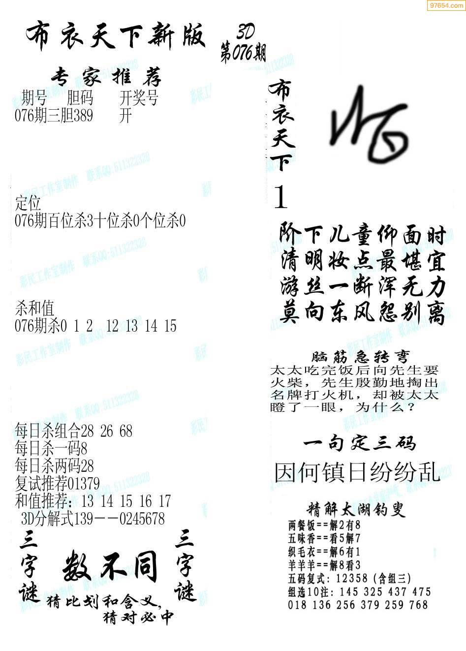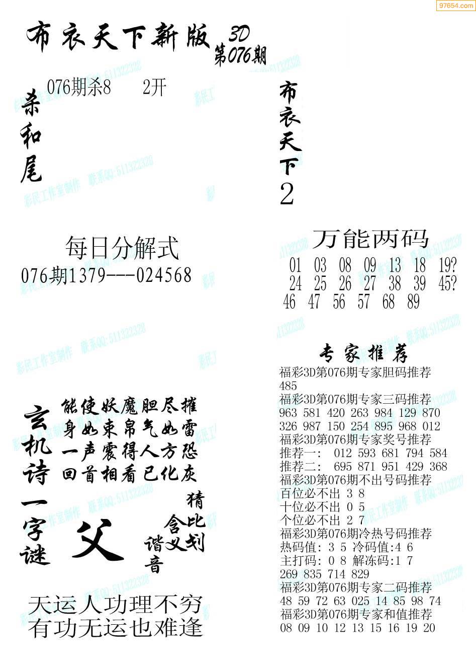 - 第063期[乱世佳人]福彩3D字...