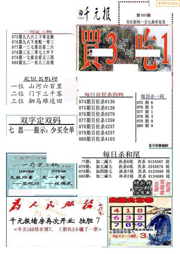- 3d第26061期3d试机号三句话