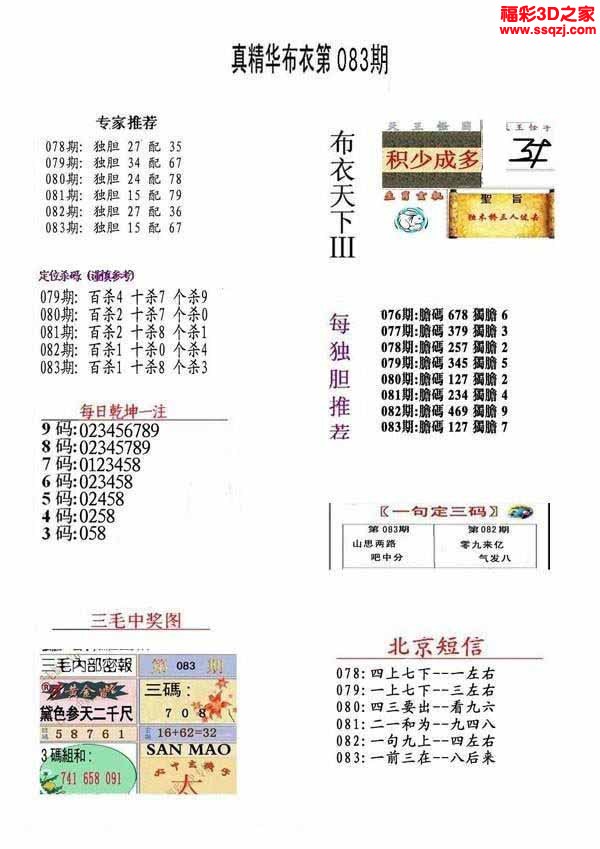 - 3d第26061期3d试机号三句话