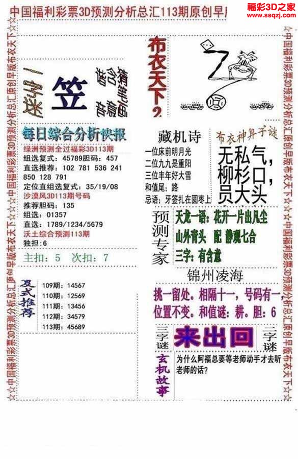 3d2022113期真精华早版布衣12