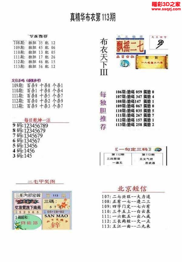 3d2022113期真精华布衣天下123456
