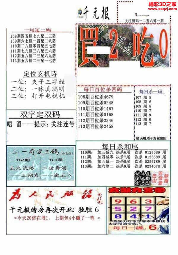 3D26063期[夫子命]独胆双胆图