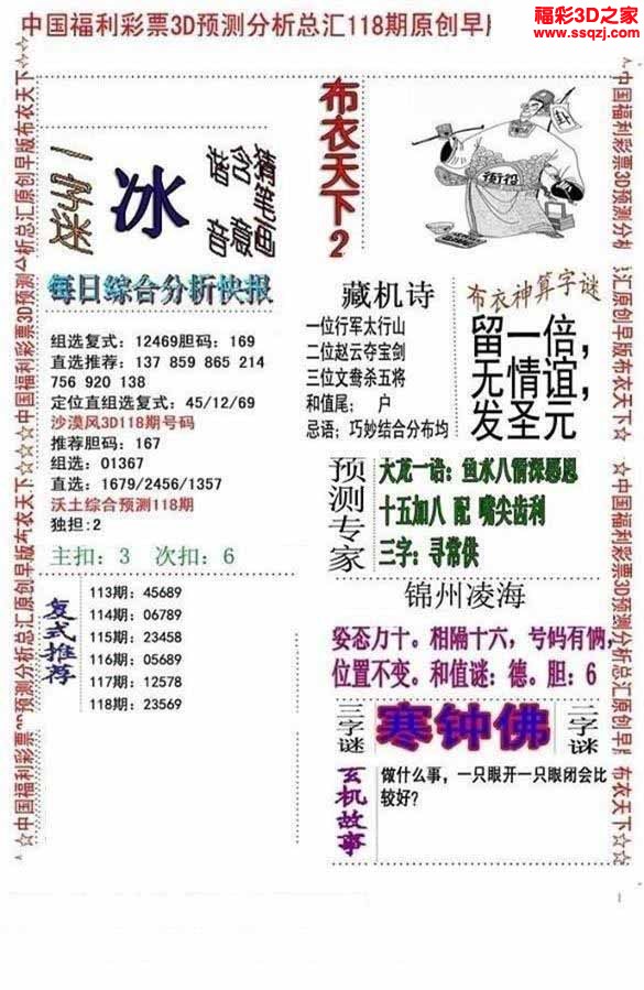 3d2022118期真精华早版布衣12