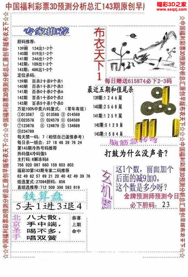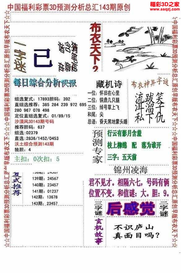 - 26031期福彩3d试机号后3d定胆诗谜