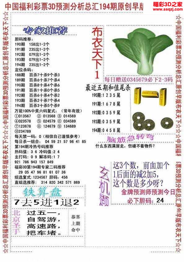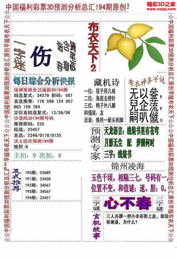 3d2022194期布衣神算AB版