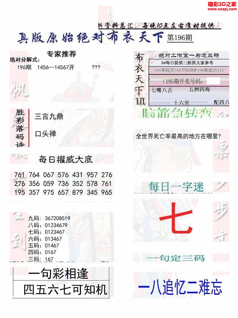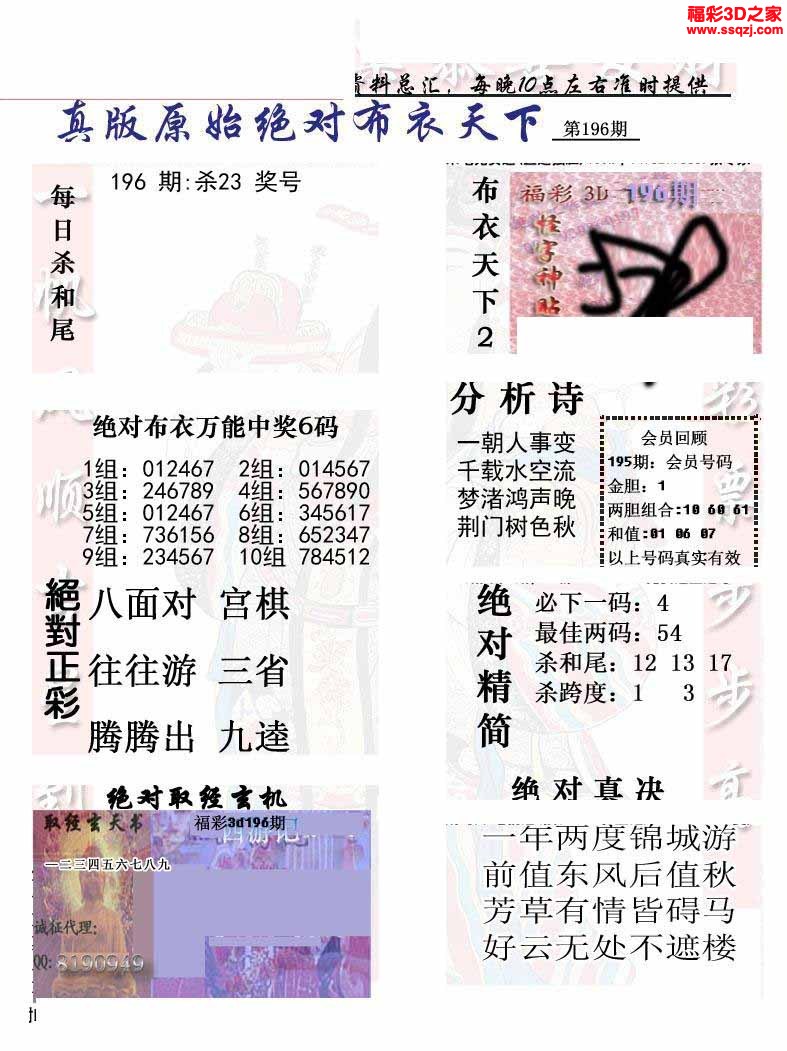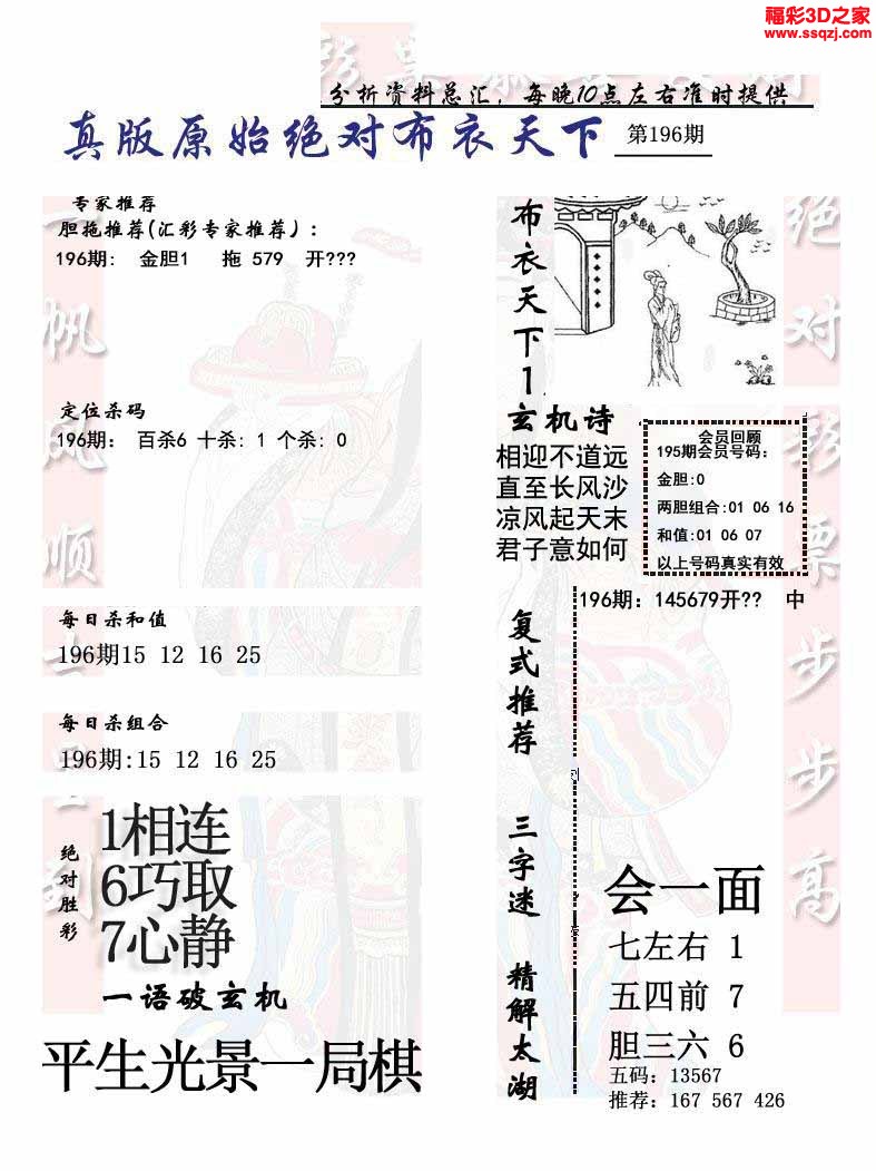 3d2022196期真精华布衣天下123456