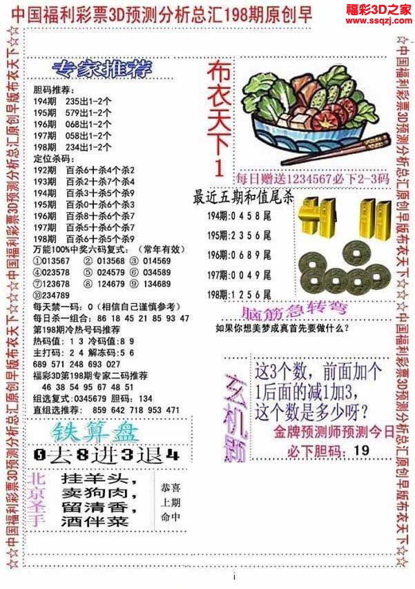 3d2022198期精华早版布衣12