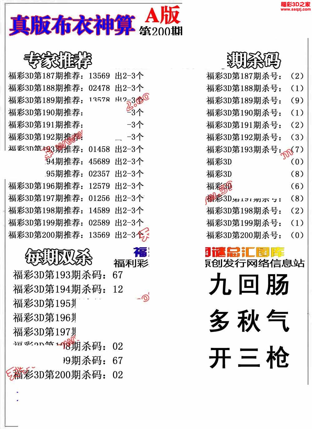 3d2022200期真精华早版布衣12