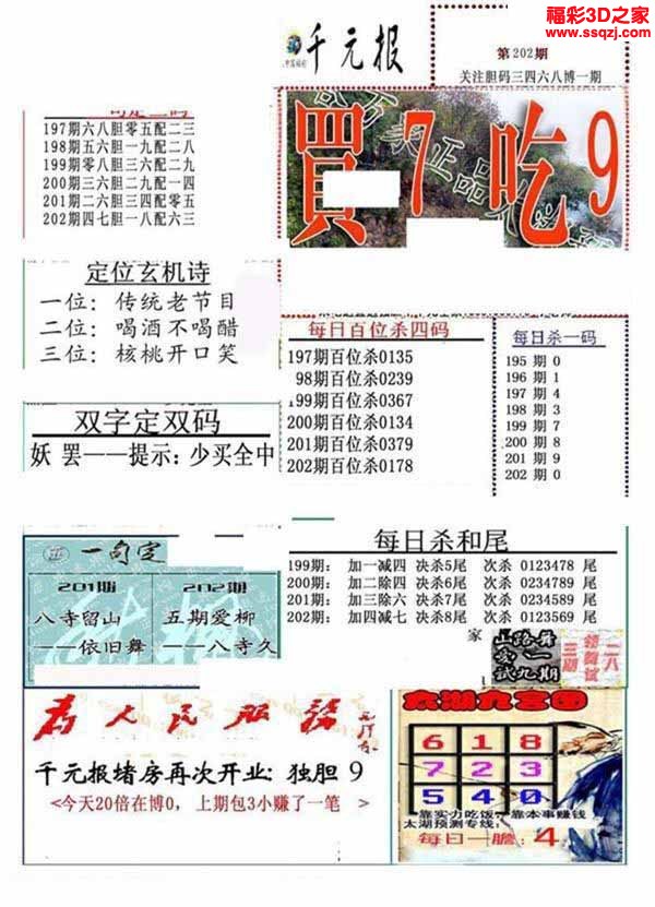 3D26059期[瓦大年]独胆双胆图