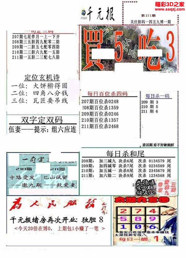 3D26068期钱大爷稳三胆...
