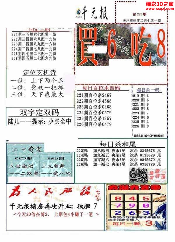 3D26069期[瓦大年]独胆双胆图