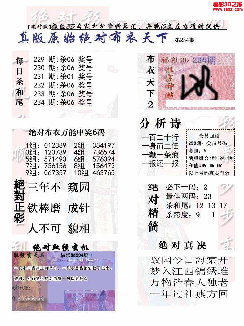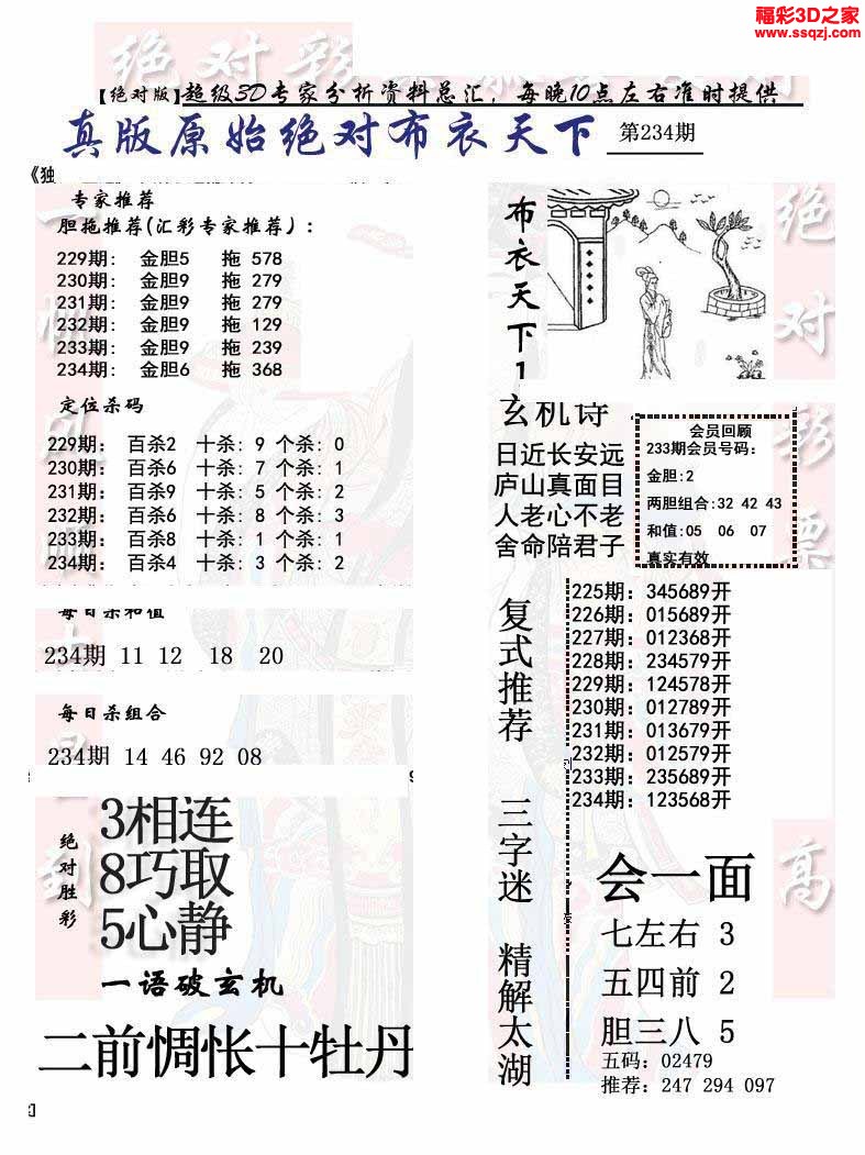 3d2022234期真精华布衣天下123456