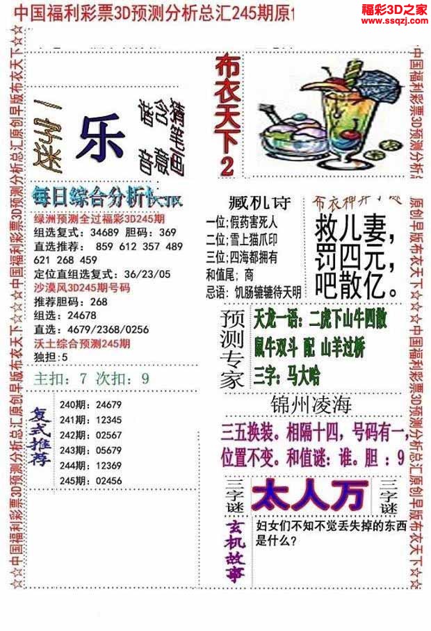 3d2022245期布衣神算AB版