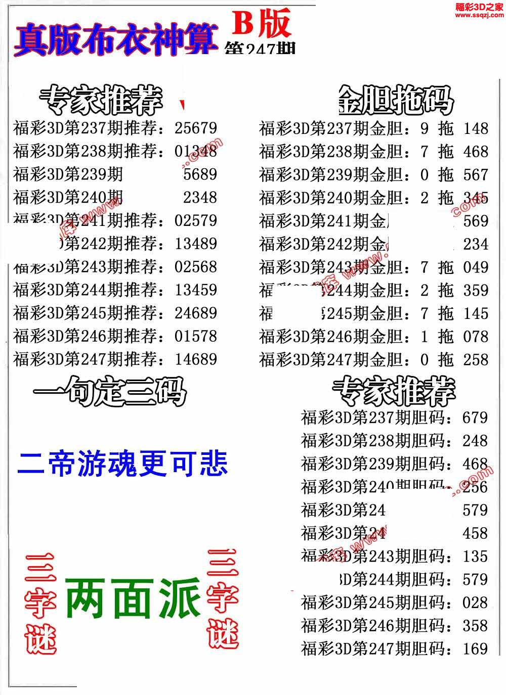 3d2022247期布衣神算AB版