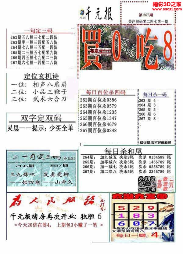 3D26071期钱大爷稳三胆图 8中6