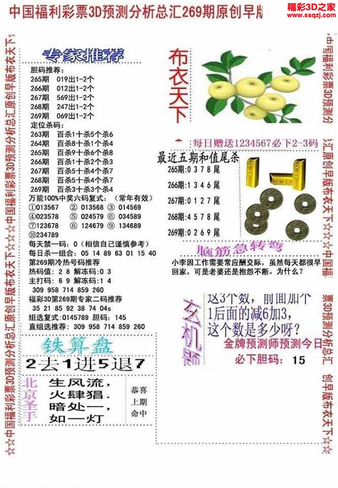 3d2022269期精华早版布衣12