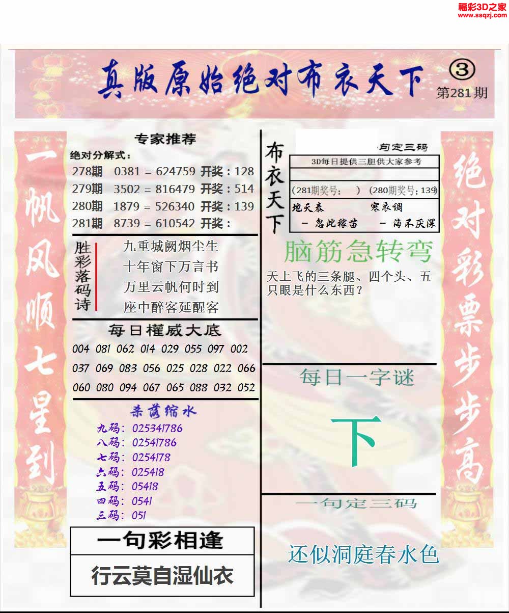 - 七星彩第26032期[持刀书生]...