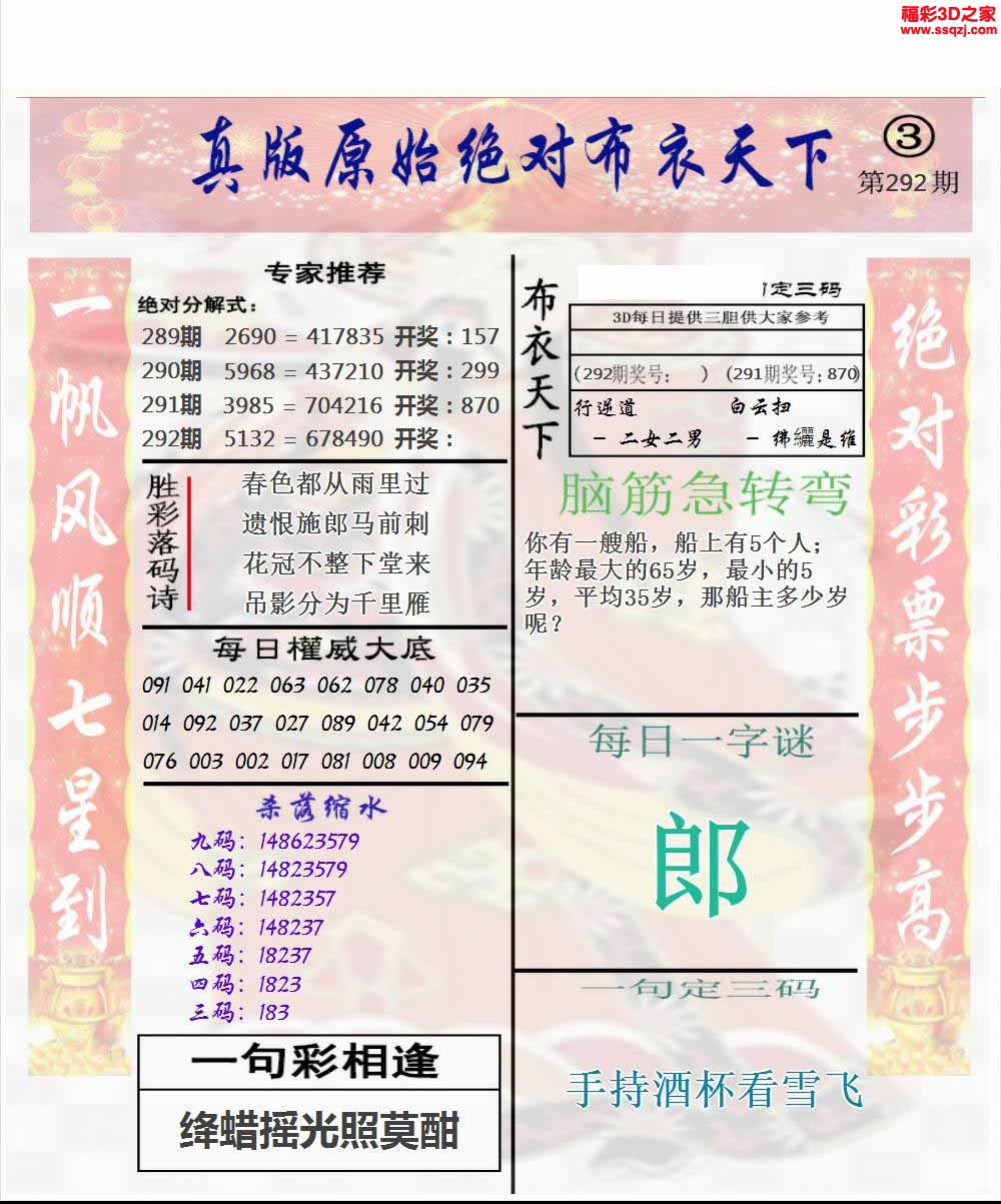 - 七乐彩26032期[阿甘]今日杀...