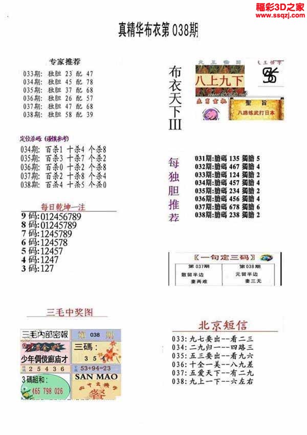 3d2023038期真精华布衣天下123456
