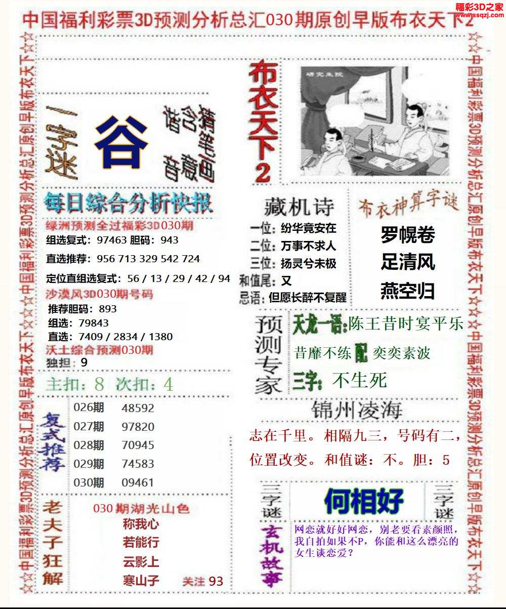 3d2024030期布衣神算AB版