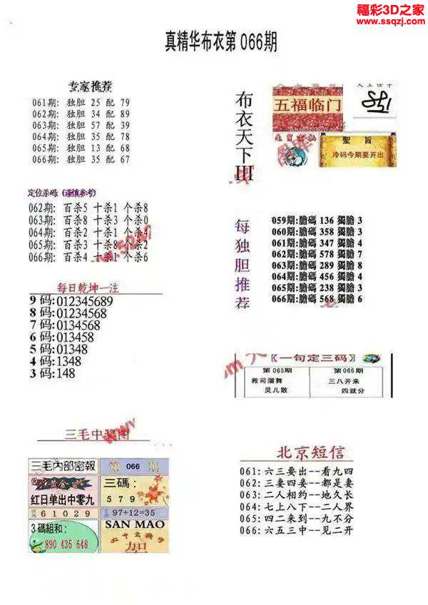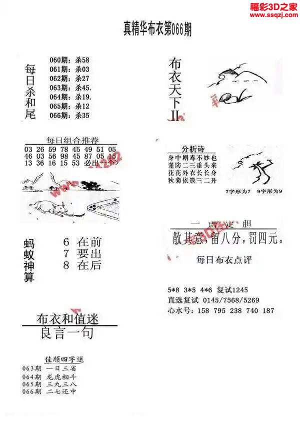 3d2024066期真精华布衣天下123456