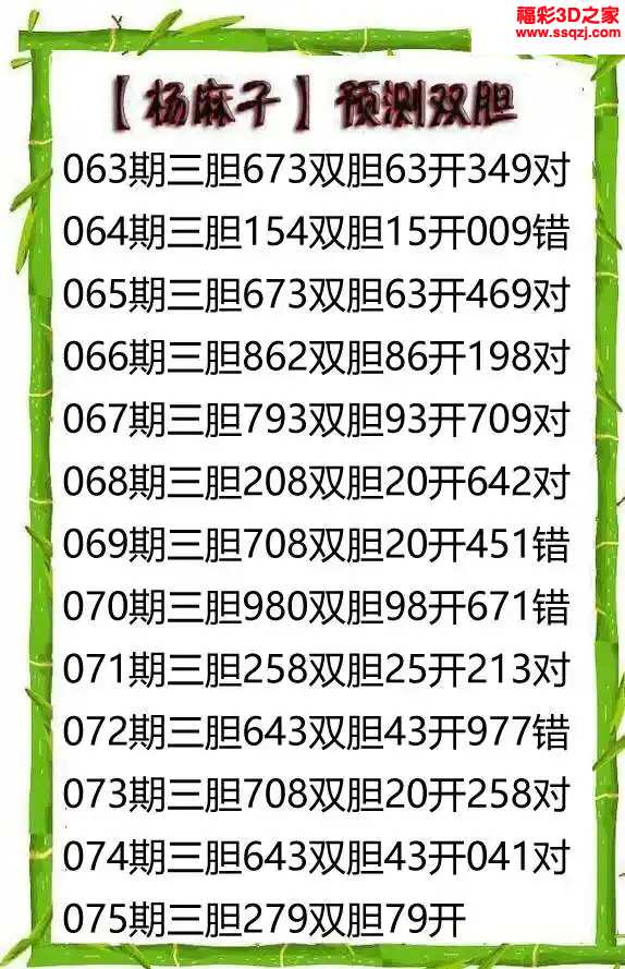 3d2024075期杨麻子双胆 连中