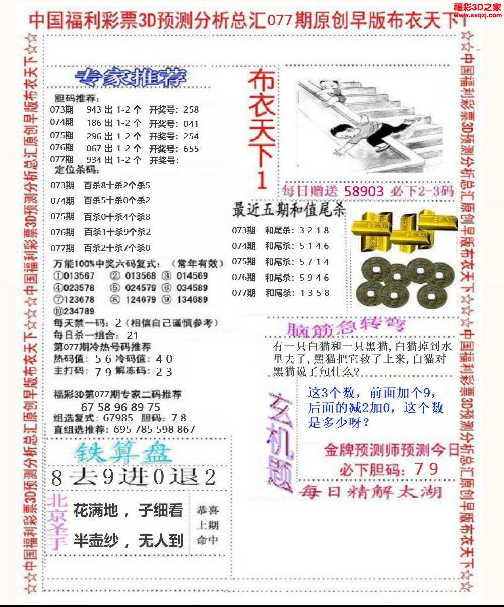 3d2024077期布衣神算AB版