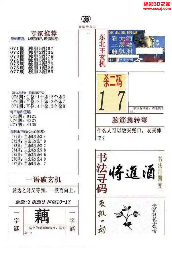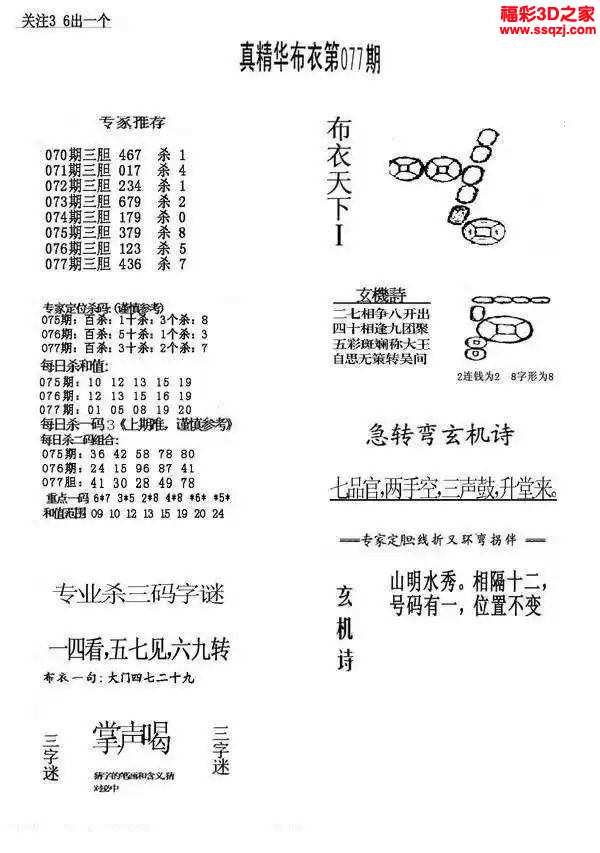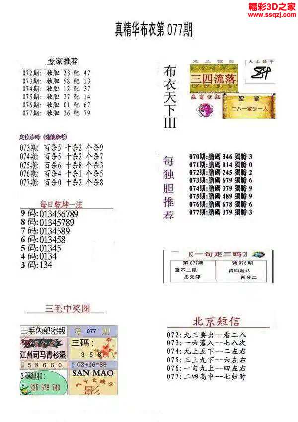 3d2024077期真精华布衣天下123456