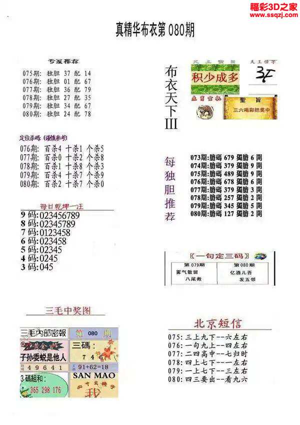 3d2024080期真精华布衣天下123456