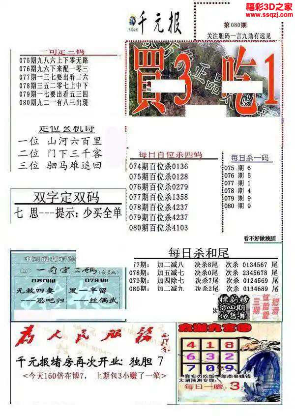 3D26081期[大哥大]三胆...