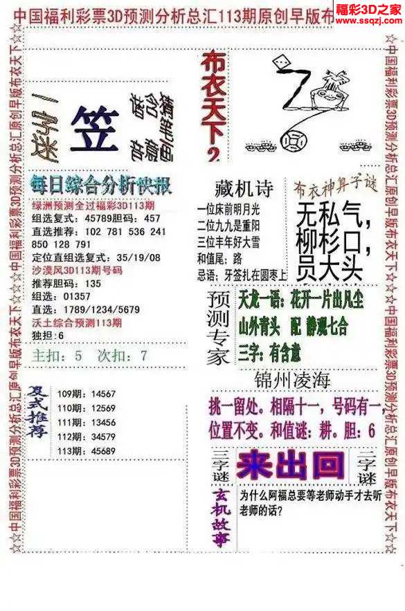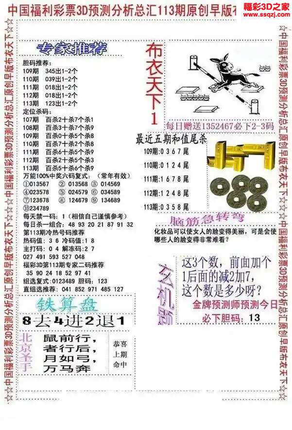 3d2024113期布衣神算AB版