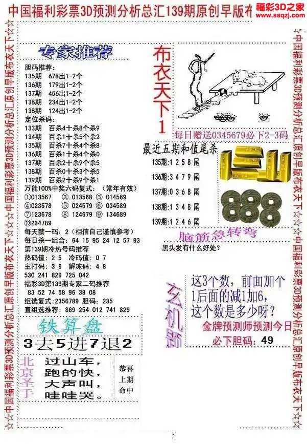 3d2024139期精华早版布衣12