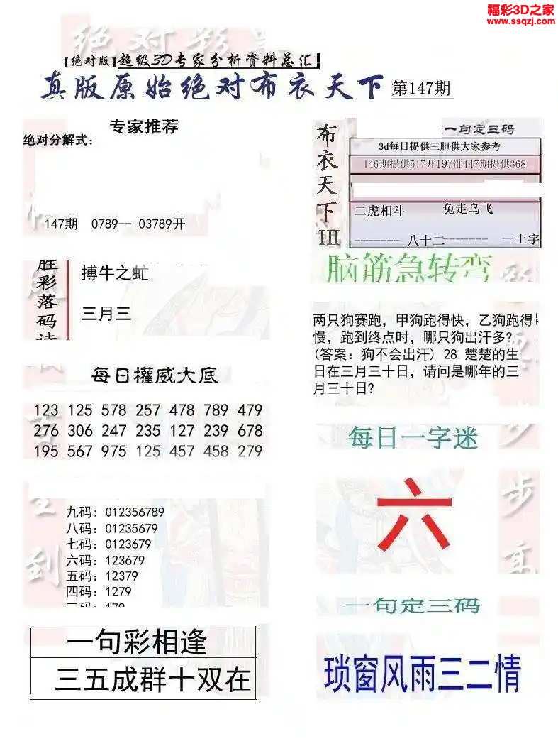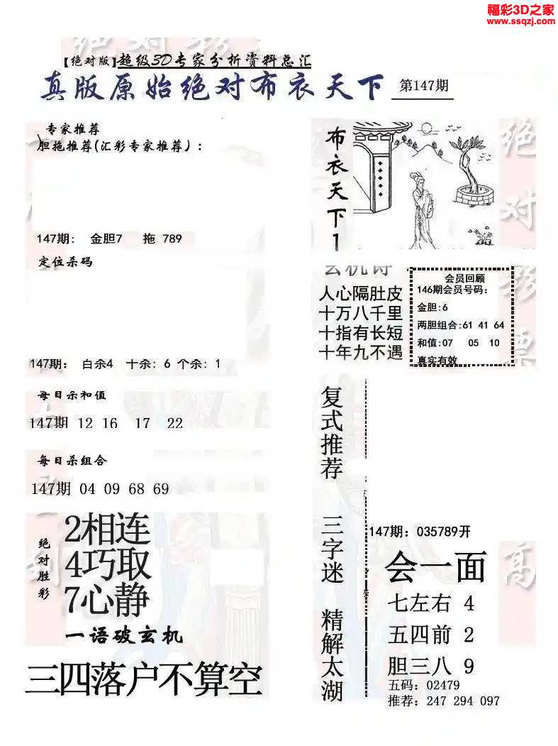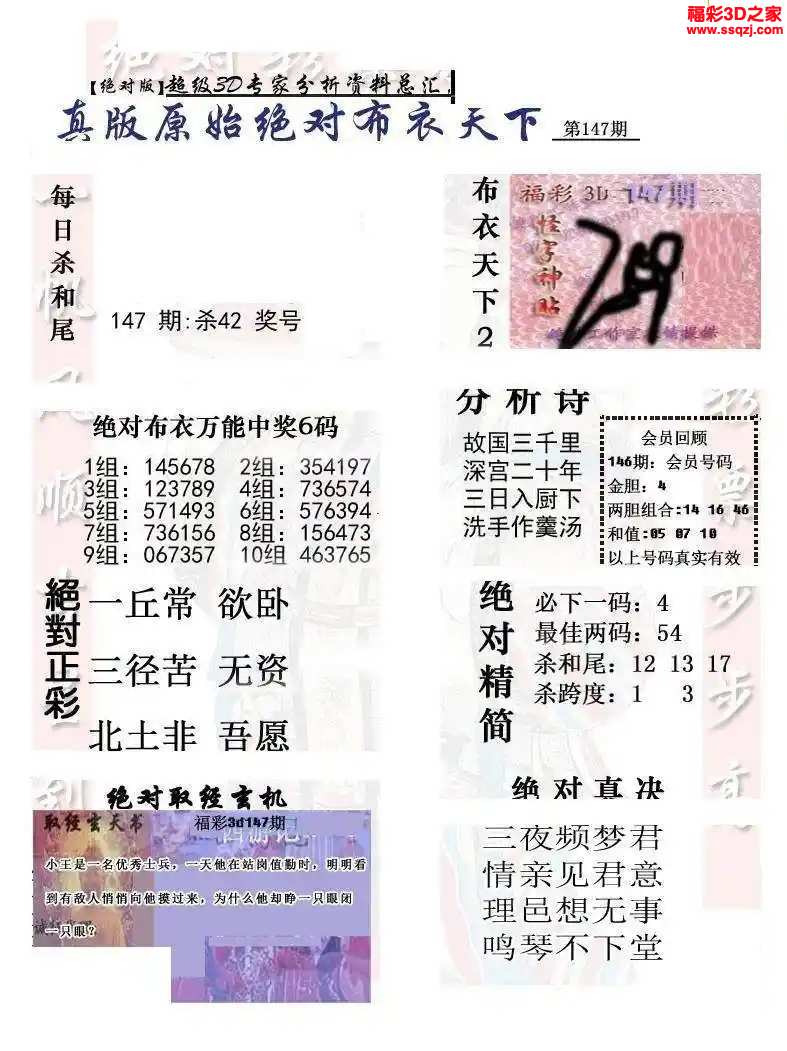 - 26103期福彩3d试机号后3D定胆诗谜